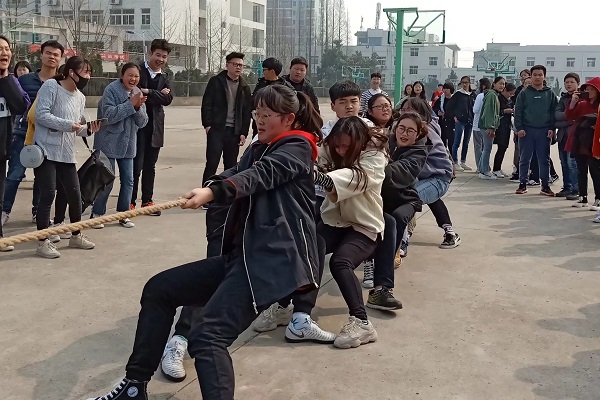 次日,复赛在东区操场成功举办。每个班级通过三轮游戏——夹乒乓球,“1块5”游戏,拔河,来与其他班级比拼。第一个环节是考验班级人员之间的配合能力,各班轮番上阵,各显神通。第二个环节是“1块5毛”,伴随着欢乐的音乐,主持人一声令下,男女生各自找寻着符合自己的人,增进了同学之间的感情,锻炼出了团队的反应力。第三个环节是考验力量的环节。游戏开始两队找准了自己的位置,随着哨声,双方在亲友团的呼喊声中开战了,队员们一个个使出浑身解数,一步步的让自己向成功靠近,最后在他们的呼喊声中结束了拔河之战。