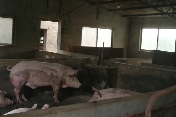 据了解,该猪场只有两间房舍,一间育肥舍和一间产房,猪的主要品种为大白猪。肥育舍里有80余头大白猪,产房里有七头种畜及40余头仔猪,肥育舍中的大白猪基本上160天便可以出栏,较符合该品种的养殖周期。根据实地考察及该养殖场主介绍,养殖场主要采用三格化粪池对粪便污水进行处理,化粪池中的污泥经过晾晒后用作肥料撒在自家地里,实现还田利用。