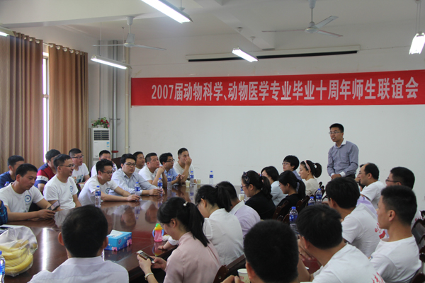 联谊会上,汪元宏代表学校校友会对返校聚会的校友表示欢迎,介绍了学校发展的现状和愿景规划,希望广大校友一如既往地关心和支持母校的发展。刘德义代表学院对2007届动物医学和动物科学校友欢聚母校表示热烈欢迎,对校友在各自岗位取得的突出成绩表示祝贺,对校友们长期以来关心和支持母校事业的发展表示由衷感谢。同时刘提出两点希望:一是希望校友们要经营好各自的事业与家庭,努力做到事业蒸蒸日上,家庭美好幸福;二是希望校友们继续关注母校、关心动科院的发展,加强与母校、老师的联系,常回学校看看。