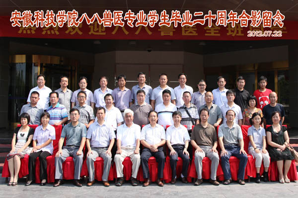 7月21日至22日,来自全国各地的动物科学学院88级兽医专业26位校友,冒着酷暑,在毕业二十周年后母校再聚首。校党委书记汪元宏,滁州学院党委书记余在岁,校党委副书记蒋德勤,动物科学学院总支书记刘德义,88级兽医专业辅导员何孟飞和部分授课教师应邀参加本次聚会。