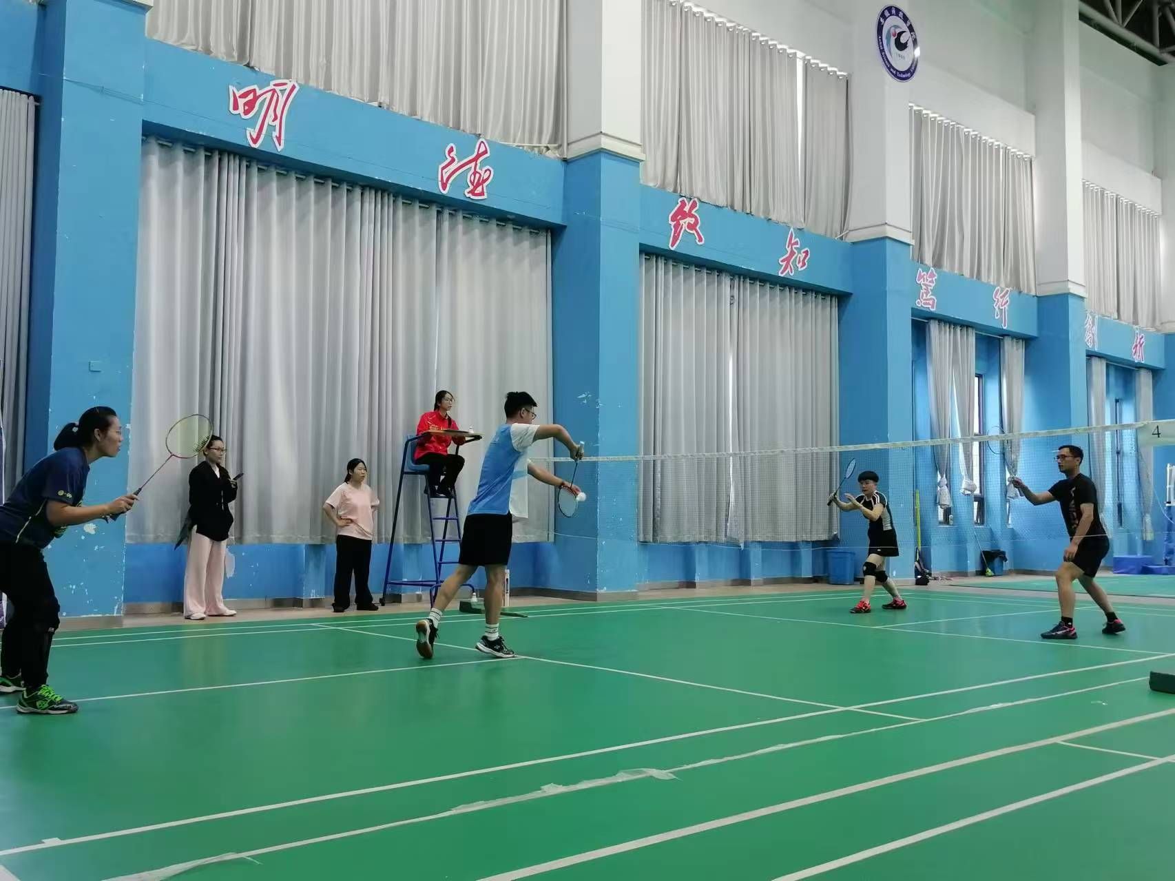 9月22日,安徽科技学院第九届教职工羽毛球比赛在西区体育馆开赛。动物科学学院分工会程郁昕、汤帅、任曼、赵磊、刘成义五位老师参赛,参加了混合团体中的男单、女单、混双项目。全体队员在比赛中团结一心,奋勇拼搏,展现了动科院优良的体育传统和良好的精神风貌。
