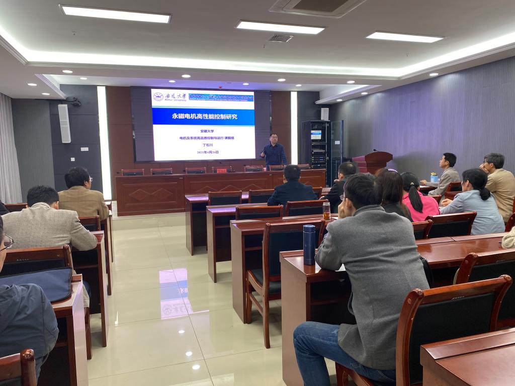 为加强学院教师学术交流与合作,浓厚学术氛围,拓展师生的科研视野,应学院邀请,2021年4月26日下午,安徽大学电气工程与自动化学院丁石川教授来我院进行学术交流,在龙湖校区西辅楼111会议室做了题为“永磁同步电机的高性能控制研究”的学术报告,相关领域的教师和学生参加了报告会。报告会由学院副院长国海主持。