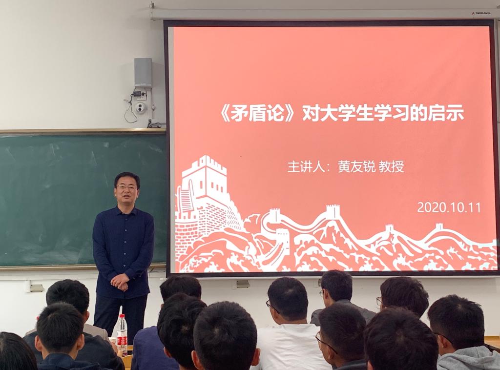 10月11日下午,安徽科技学院致知楼B108教室内,气氛热烈,座无虚席。校党委委员、副校长黄友锐走上讲台,给2020级电气工程及其自动化专业学生上了一次思政课。