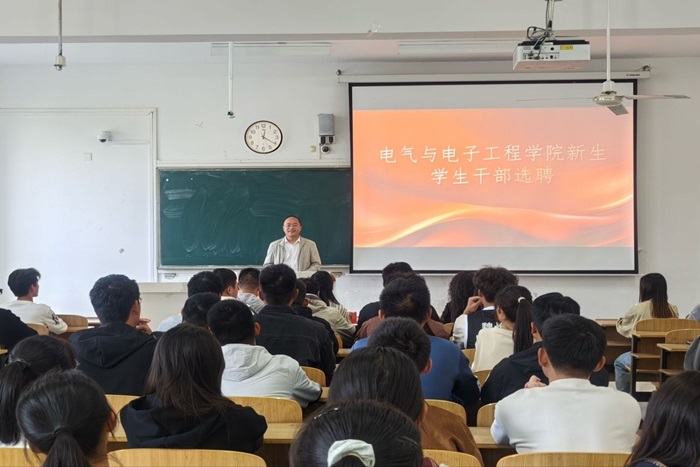 为更好培养学生,落实“三全育人”根本任务,电气与电子工程学院于10月23日中午召开2024级新生学生干部选聘大会。学院党委副书记、纪委书记尚磊,全体辅导员及参加竞聘的2024级新生参加此次会议。会议由专职辅导员陈磊新主持。