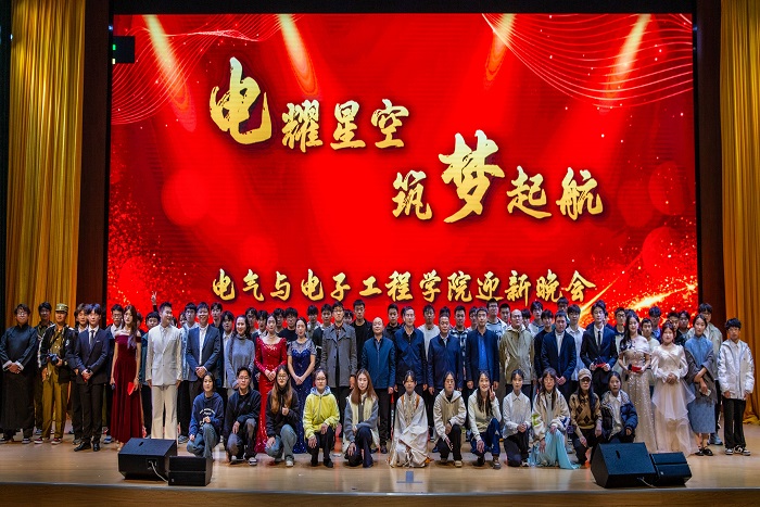 11月24日晚,电气与电子工程学院于东辅楼报告厅举办第三届“电创未来”文化节闭幕式暨“电耀星空•筑梦起航”2024年迎新晚会。学院党政领导,各系室负责人,全体辅导员及2024级新生共同观看晚会。