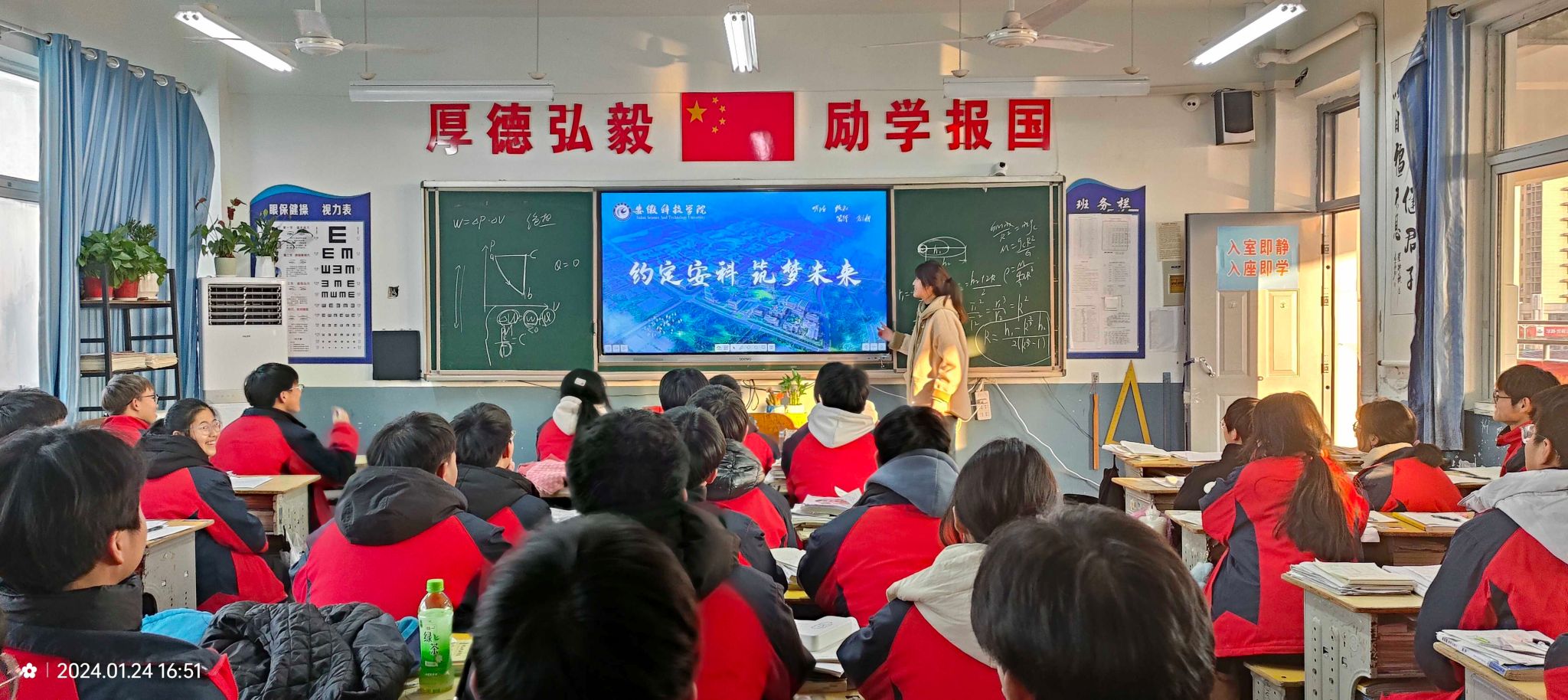 实践团队首先向母校教师们传递了在大学期间取得的成绩,并感谢他们在校期间的鼓励。之后,实践团队成员通过安徽科技学院招生宣传片对安科的优势学科、校园风光、校园文化、录取分数线等方面进行了详细地介绍,并向高三学弟学妹们介绍了安徽科技学院,耐心地回答学弟学妹们在专业选择、报考和校园生活等方面的问题。