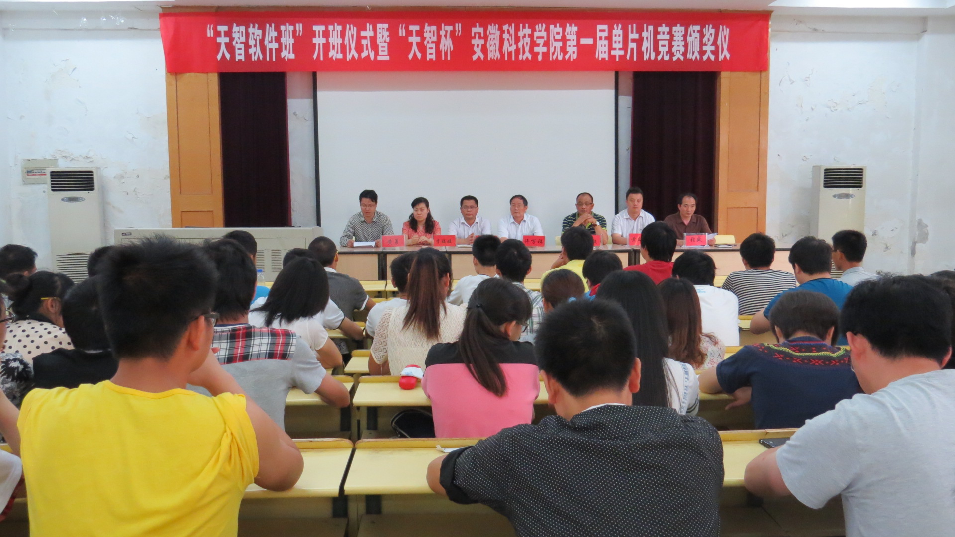 此次“天智杯”安徽科技学院首届单片机应用技能大赛是数理与信息工程学院“数理精英大舞台”系列活动的重要内容,是由校教务处、校团委和数理与信息工程学院共同主办,数理与信息工程学院计算机系实际承办,由“天智”教育培训中心提供赞助。