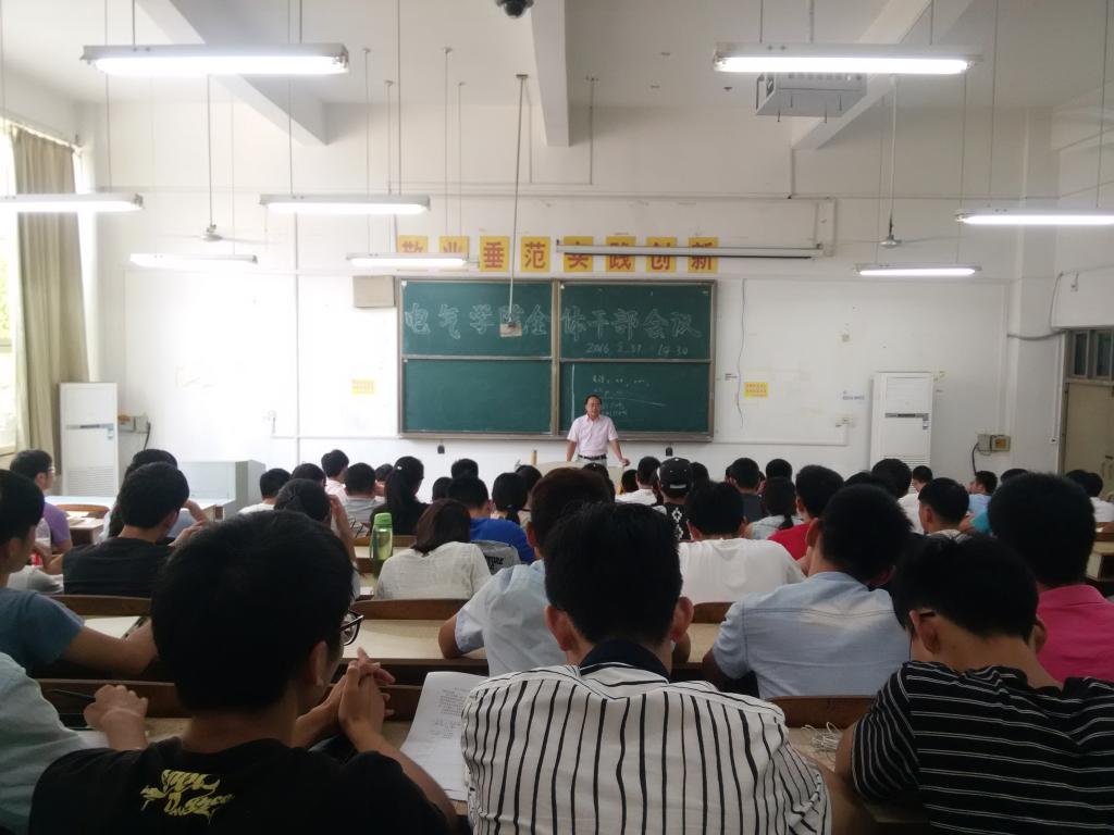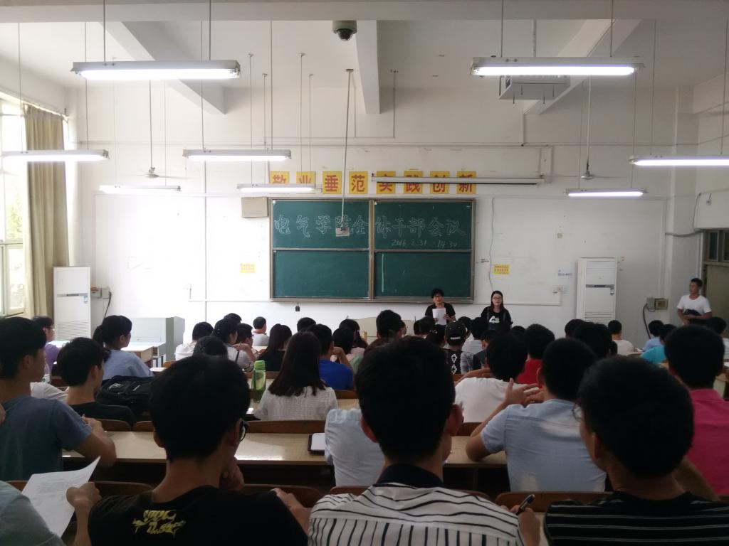 8月31日下午,电气与电子工程学院在求A102教室召开新学期全体学生干部全体会议。电气学院党总支副书记尚磊、党总支秘书、团委书记段素梅、辅导员余维发、王延丽、邓茜、学生会全体成员、各班级班长和团支书参加了会议,会议由段素梅主持。