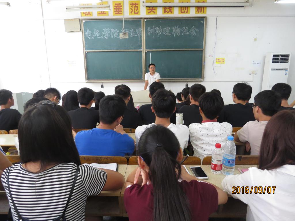 9月7日下午,电气与电子工程学院在求A102召开新生军训助理聘任大会,学生处学生科石志成、电气与电子工程学院党总支秘书、团委书记段素梅、学生会秘书长王延丽、学生会全体成、安徽科技学院国旗班全体成员参加了会议。