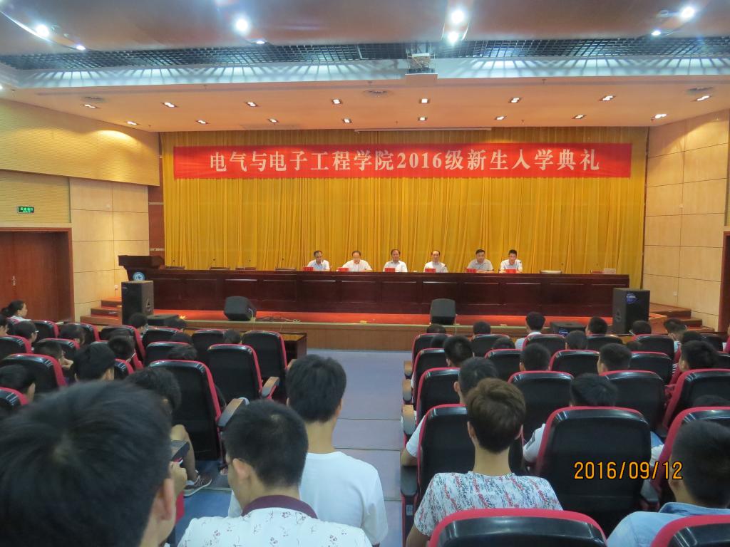 9月12日下午,电气与电子工程学院在报告厅隆重举行2016级新生入学教育动员大会。电气与电子工程学院院长章毛连、党总支书记张盛、副书记尚磊、系主任、全体辅导员、新生班主任和全体新生出席大会,大会在庄严的国歌声中拉开序幕。会议由尚磊主持。