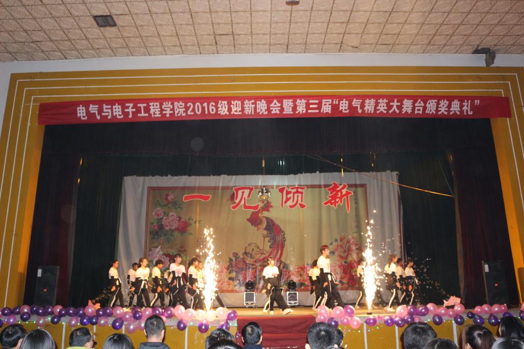 11月27日,电气与电子工程学院在第一活动中心隆重举行2016级迎新晚会暨第三届“电气精英大舞台颁奖典礼”。校党委委员、宣传部部长卫胜、校团委副书记黄立义、党总支书记张盛、副书记尚磊等出席,学院教职工、辅导员、班主任和全体2016级新生齐聚一堂,共享盛宴。