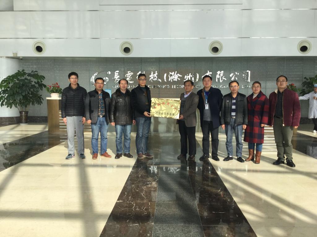 8日上午,章毛连、张盛一行首先来到长电科技(滁州)有限公司,受到了公司常务副总经理谢洁人、总经理助理虞建清、人力资源部经理宋健等领导的热情接待。长电科技成立于1972年,是大陆排名第一,全球排名第三的半导体封测企业,也是国内首家集成电路封装测试上市企业,覆盖全球中高端客户,在半导体封测技术领域位于全球领先地位。章毛连、张盛向公司领导详细介绍了学校的办学历史、办学规模、办学优势和发展战略,听取了相关负责人对企业运营、管理、生产、研发等方面的详细介绍,并在相关负责人的陪同下实地考察了公司的生产车间、测试实验室、研发实验室,同相关工作人员进行了亲切的交流,并就相关技术问题展开了有益的探讨。随后双方就教师与企业研发人员联合开展技术攻关、企业与学院实行常态制学术交流与研发合作、电类工科毕业生深入生产研发一线进行实践锻炼、企业直通学院开展电类工科人才专场招聘等话题展开了热烈有效的讨论,达成并签署了合作协议,举办了产学研合作基地授牌仪式。