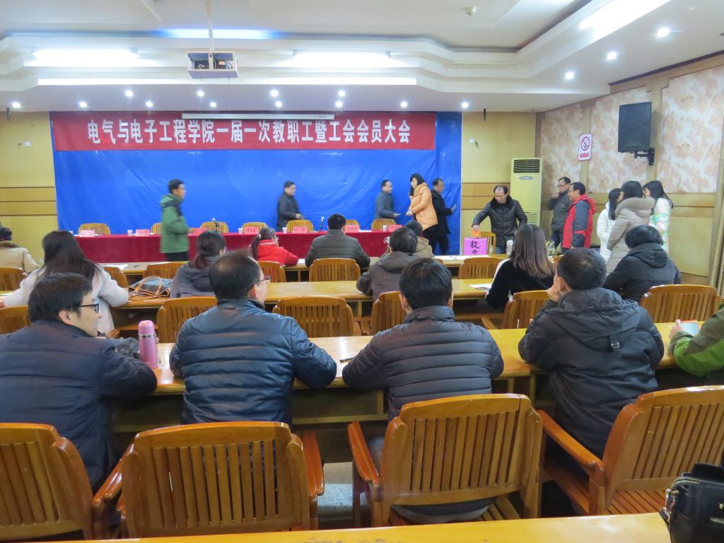 为健全和完善我校教职工代表大会制度,加强学校民主政治建设,扩大基层民主,保障教职工参与民主管理和监督的权利,12月18日下午,电气与电子工程学院在图书馆会议室隆重举行一届一次教职工暨工会会员大会。学院党政领导班子、全体教职工参加了会议。会议由党总支副书记尚磊主持。