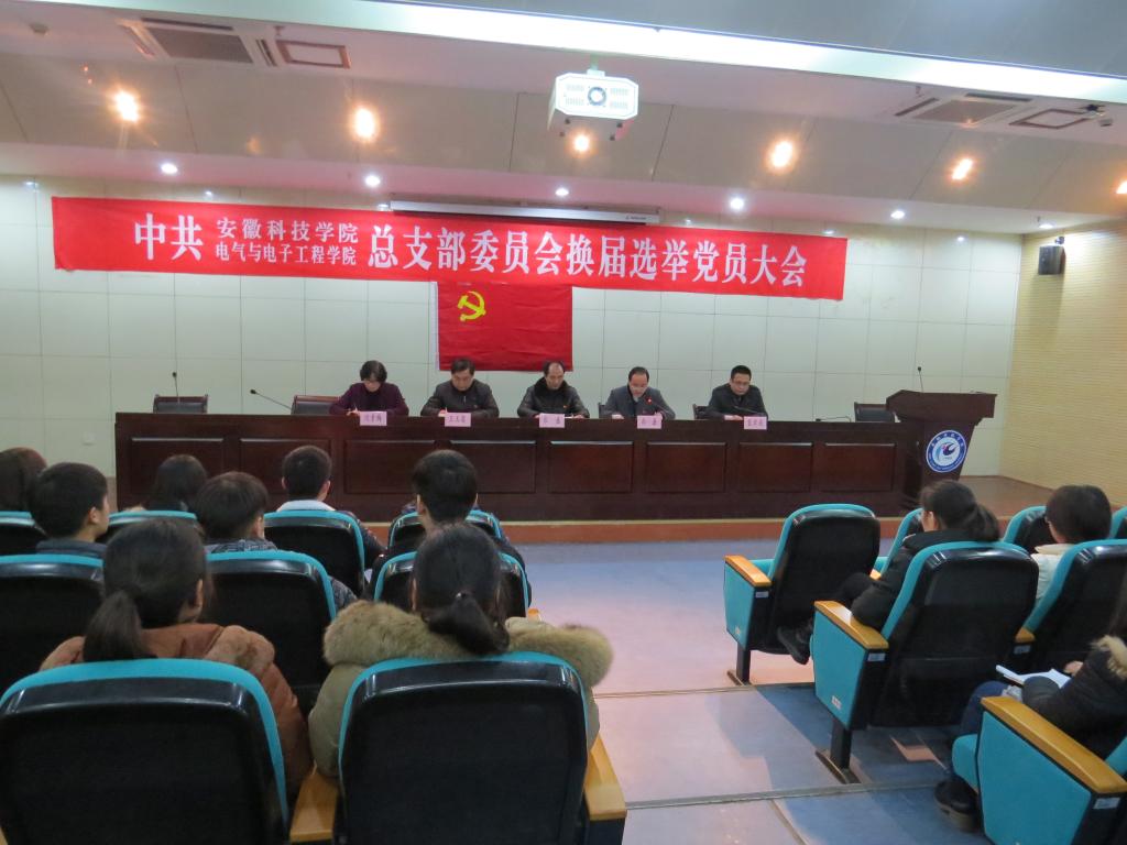 大会表决通过《中共安徽科技学院电气与电子工程学院总支部委员会工作报告的决议》(草案)、《中共安徽科技学院电气与电子工程学院总支部委员会换届选举办法》(草案)和监票人、计票人建议名单。选举产生了由张盛、尚磊、王玉莲、何恩节和国海等五位同志组成的电气与电子工程学院新一届总支部委员会。
