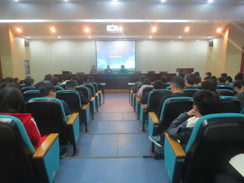 为了响应“大众创业,万众创新”的口号,培养出一批优秀的、具有创业基本素质和开创性的人才,3月22日,电气与电子工程学院在图书馆一楼第一会议厅召开科创小团成立大会。学院党总支副书记尚磊,党总支秘书、团委书记段素梅及辅导员王延丽出席会议,学院全体学生干部参会。