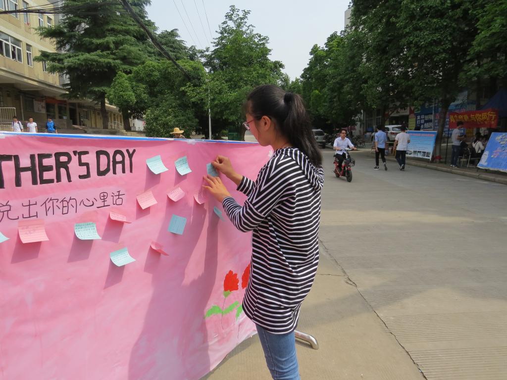 在活动前期,院学生会通过官方QQ收集同学们投稿的最美母亲的照片,并进行整理和挑选出符合主题的优秀作品进行展示,以迎接母亲节的到来。活动当天,现场摆点,采集同学写给自己母亲的祝福纸条和精致的明信片,进行展示。活动吸引广大路过的同学纷纷驻足参加。一条条真诚的祝福表现了学子们对父母的感恩和祝福。“节日最易勾情,愿家乡的父母平平安安,健健康康”,现场参与的小伙伴如此说道。