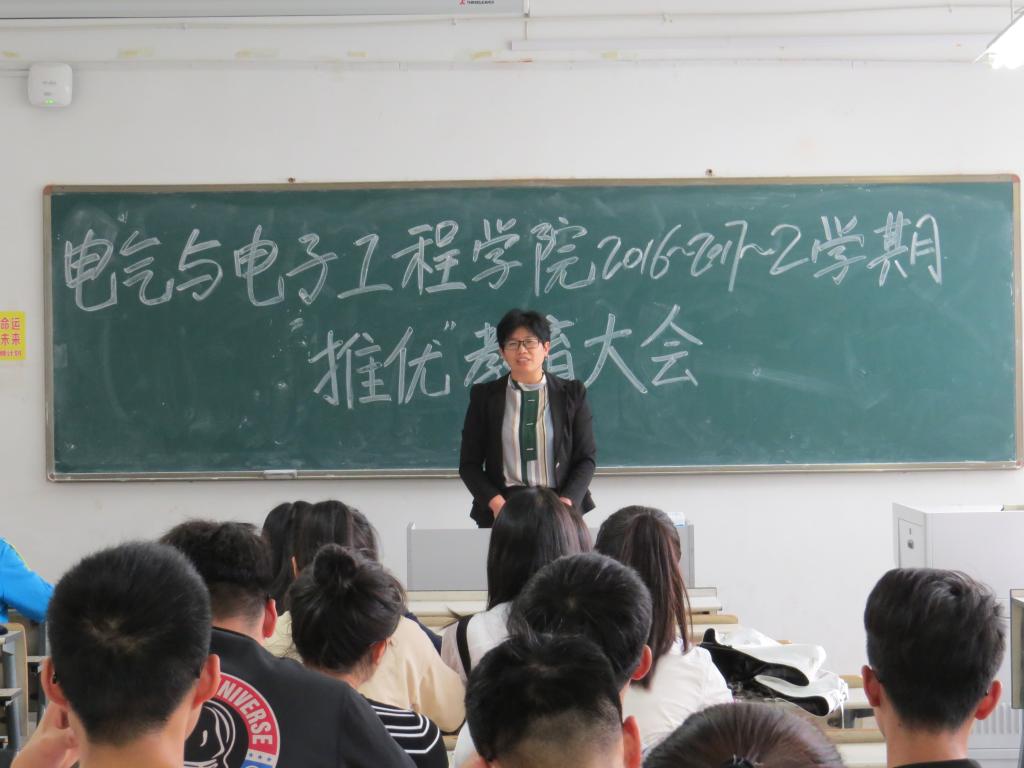 为进一步加强入党积极分子教育,规范组织发展考察流程,向党组织输送优秀人才,5月15日中午,电气与电子工程学院在学知楼114教室召开2016至2017学年第二学期“入党推优考察对象”教育大会。本次“推优”对象共63人参加会议,学院党总支副书记尚磊出席并作教育讲话。会议由党总支秘书、团委书记段素梅主持。