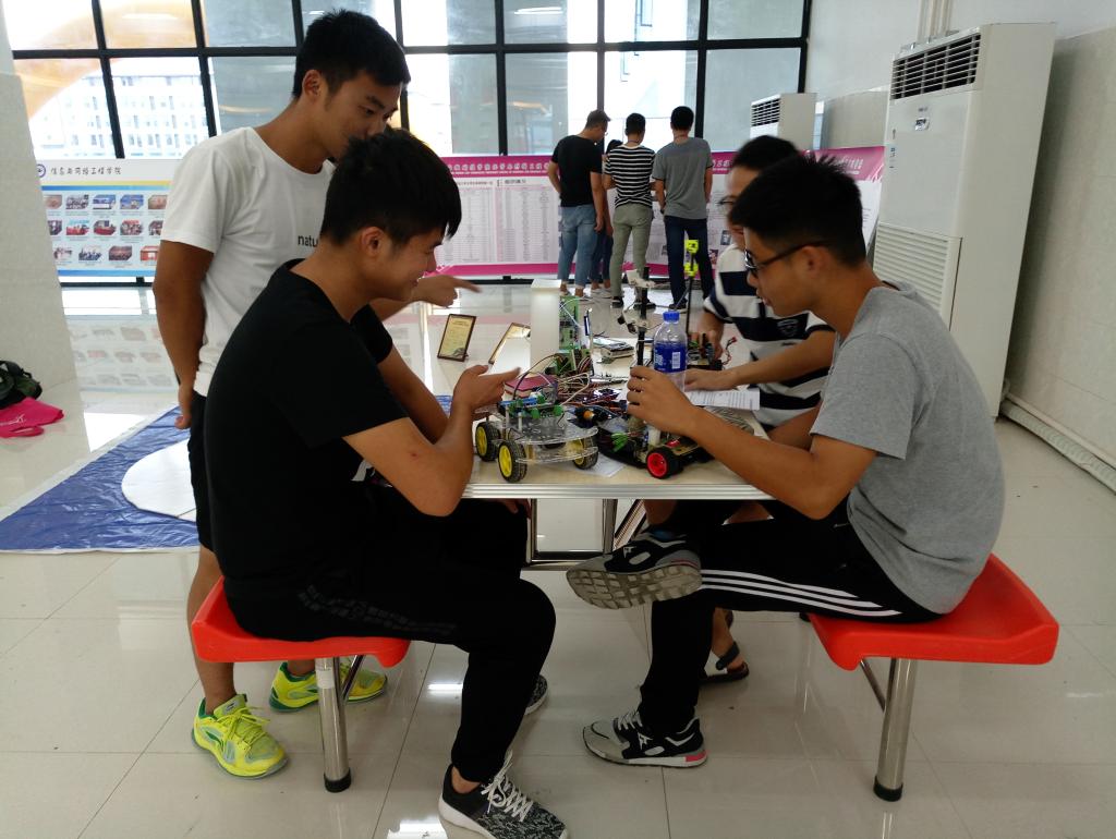 为让新生在报到过程中体验专业特色,9月16日,电气与电子工程学院的“智能车协会”的车手们把赛场搬到了迎新现场,引来众多新生和家长的驻足。
