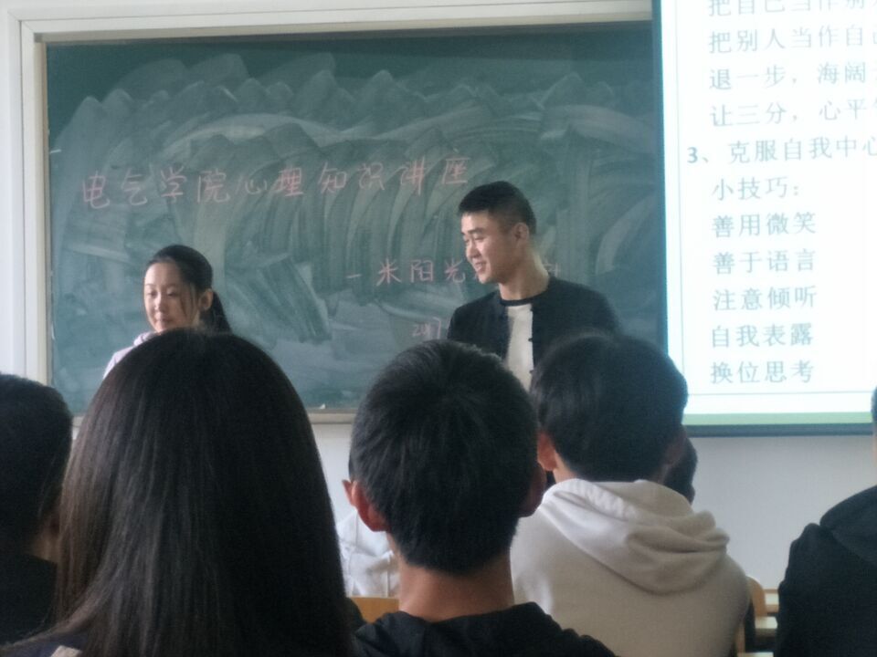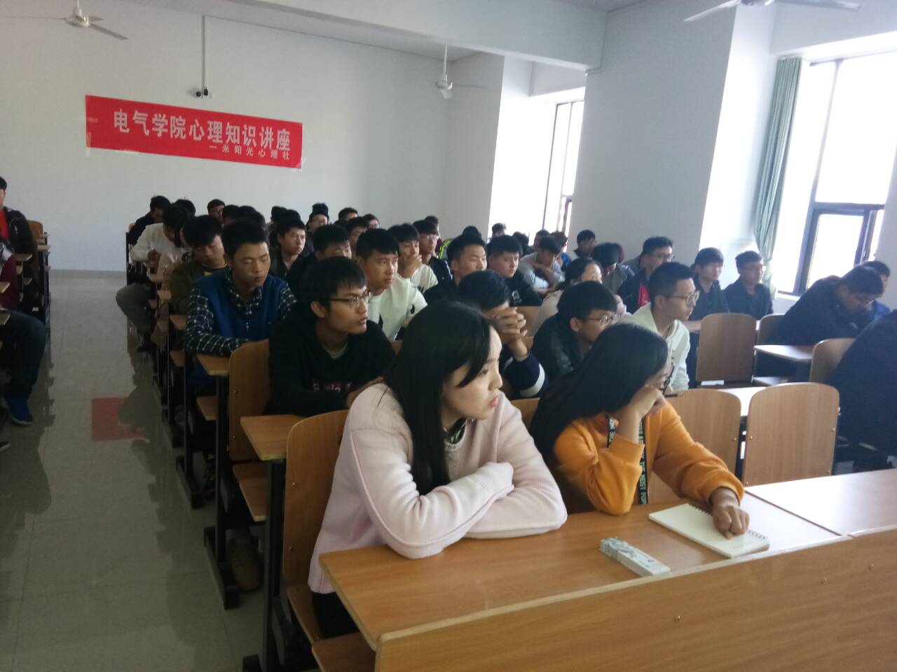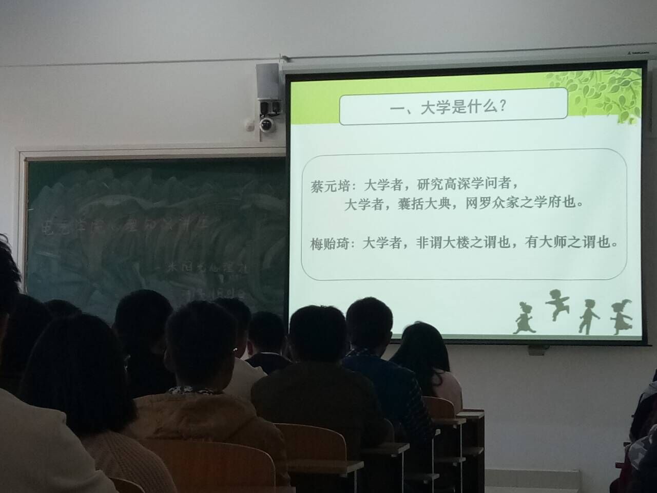 11月1日下午,电气与电子工程学院在龙湖校区致知楼c206教室举行以“积极适应大学生活 用心打造健康人生”为主题的心理健康知识讲座。本次讲座由学院心理辅导老师、党总支秘书段素梅主讲,全体2017级新生班级心理委员和班级主要干部聆听了讲座。讲座由学院“一米阳光心理社”团长韩越祥主持。