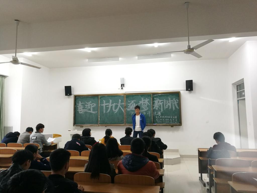 为庆祝党的十九大胜利召开,进一步增强广大青年学生的爱党爱国热情,提高大学生的使命感、责任感和荣誉感,11月12日下午3:00,电气与电子工程学院在致知楼A201成功举办由院学生会宣传部、励志宣讲团组织的以“喜迎十九大,逐梦新时代”为主题的演讲比赛决赛。本次演讲比赛的评委有:学生会主席李鹏,社联副主席方王刚,励志宣讲团团长陶天媛,副团长王其露。学生会宣传部成员和励志宣讲团成员到场观看了比赛。