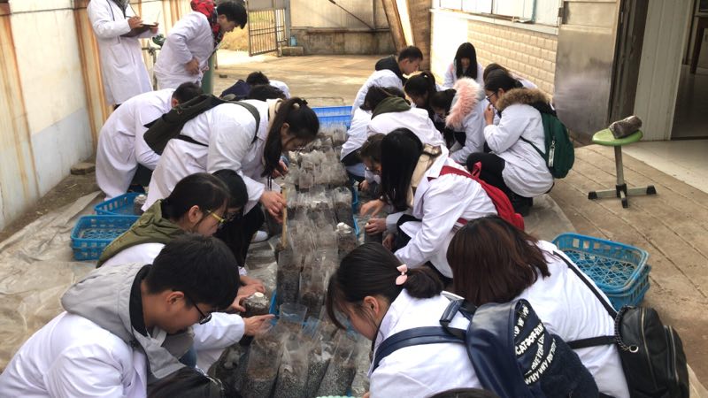 许多大学生对蘑菇的生产流程以及栽培表现出很大兴趣,详细咨询了食用菌培养材料和食用菌市场价格,并在何华奇副教授指导下亲自体验了食用菌培养料的装袋体验。