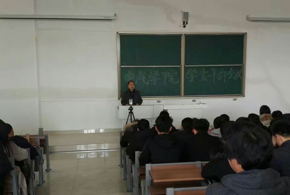 为了提高电气与电子工程学院学生干事的工作能力,进一步发挥学生干事的先锋模范作用,3月5日中午,电气与电子工程学院在龙湖校区致知楼A111召开了2018年第一次全体学生干部会议。本次会议由电气学院辅导员邓茜主持,出席本次会议的有学院党总支副书记尚磊,团委副书记王延丽、辅导员陈更强,龙湖校区17级全体学生干部参加会议,15、16级全体干部在凤阳校区求A102通过视频直播参加了本次会议。