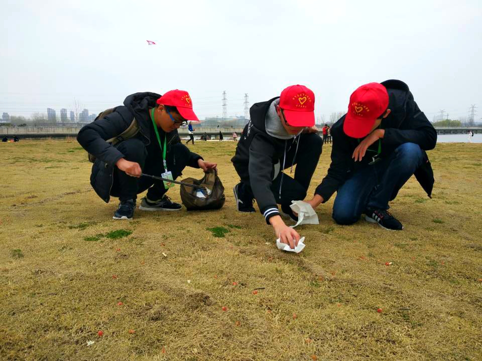 随后,全体人员抵达了龙子湖,按预先分配的小组,各组人员执行各自的工作,井然有序。环保组的负责人郭鑫蕾、夏元治带领小组人员捡拾草坪上遗留的包装袋、纸屑等垃圾,有的志愿者还帮小朋友把挂在树上的风筝给拿下来,很有爱心也很暖心。