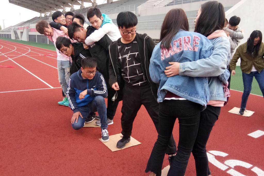 学院团委副书记王延丽全程指导,在进行一系列暖场游戏环节后,团体拓展项目依次展开,其中包括 “团队建设”、“盲人方阵”、“摇头摆尾”等项目。全体队员战胜困难,超越自我。在团队中充分发挥自我价值,圆满完成了各项任务,充分体现了团队的凝聚力、创造力。在摇头摆尾环节,全体队员们共同努力,在规定时间内完成任务。一个个坚实有力的肩膀,一声声不轻言放弃的鼓励,队员们深刻体会到成长过程中家人、老师、同学和朋友对自己的帮助,引发了深刻的反思。