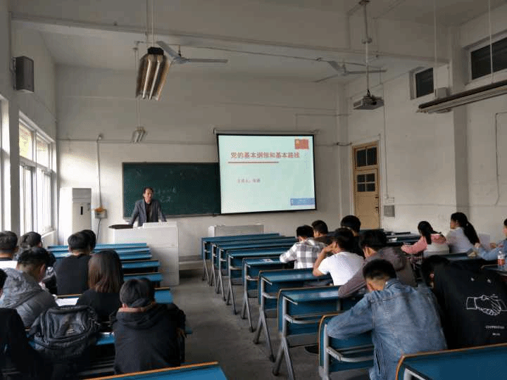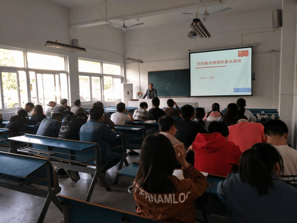 4月18日下午4:30,电气与电子工程学院党总支在学知楼107教室积极举办的新一期党课培训。本次党课的主题是“党的基本纲领和基本路线”,由党总支书记张盛主讲,新一期党校全体学员参加了本次党课。