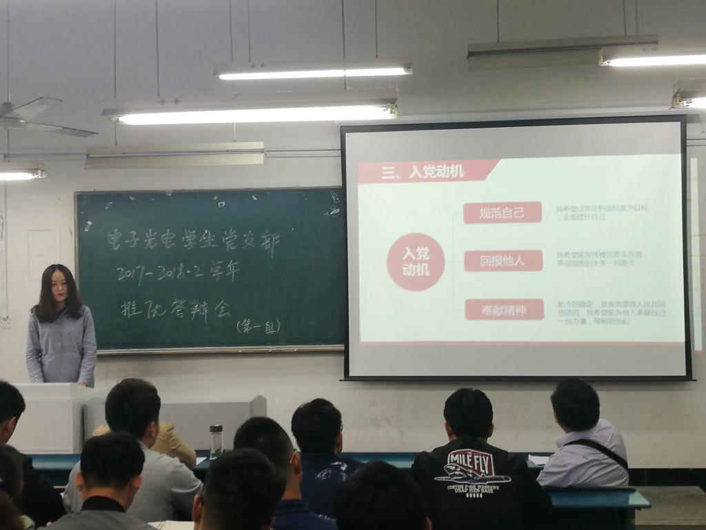 此次拟发展对象集中答辩会是电子光电学生党支部在严格规范支部标准化建设工作中探索出来的特色做法,是加强入党积极分子和党员学习教育的生动党课,也是对党员发展工作规范化的有益探索。答辩会取得圆满成功。(特约通讯员:段素梅)