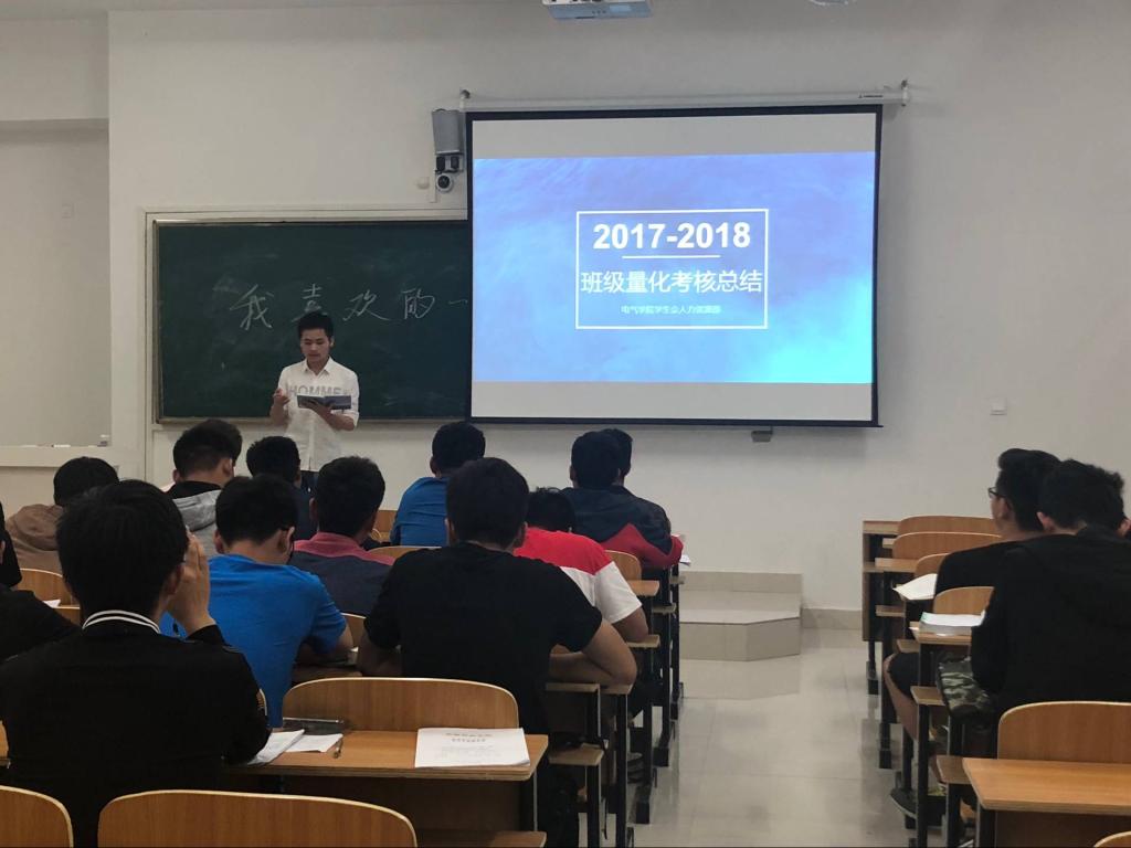 5月10号晚上,电气与电子工程学院举办班级量化考核结果宣讲会。此次宣讲会由院学生会人力资源部干事主讲,参会人员为17级各班级全体同学。