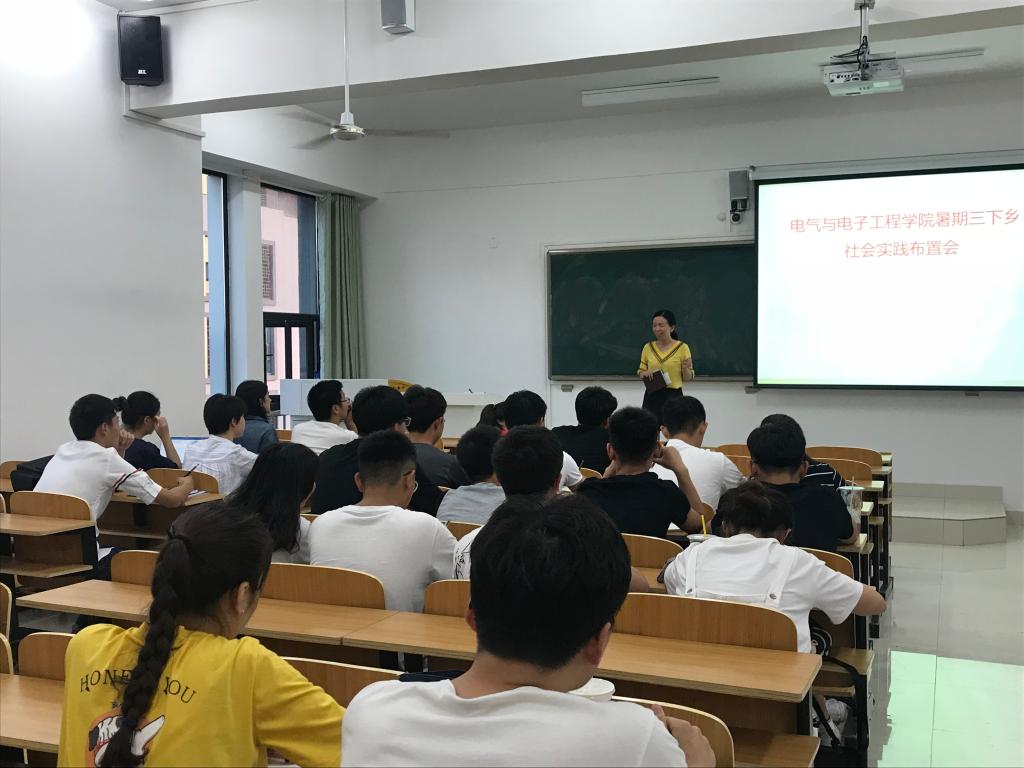 为深入学习贯彻习近平新时代中国特色社会主义思想和党的十九大精神,积极引导青年学生在社会实践中了解国情、感知社情、体察民情,通过社会实践培养社会责任感、创新精神和实践能力,电气与电子工程学院于6月14日19点在致知楼C303召开了暑期“三下乡”社会实践布置会,分团委副书记王延丽主持召开本次会议,各班级团支书、班长参加了此次会议。