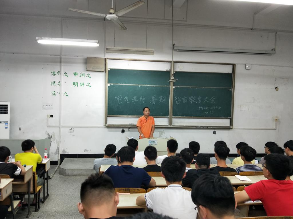 为加强暑期留校学生的管理,保障学生的人身、财产安全,7月7日晚,电气与电子工程学院在求知楼A101教室召开2018年暑期留宿学生安全教育大会。学院党总支副书记尚磊、辅导员邓茜及留宿学生参加会议。