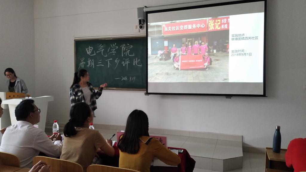 9月18日下午,电气与电子工程学院于致知楼C407举行了暑期“三下乡”社会实践评比活动。电气与电子工程学院团委副书记王延丽,辅导员杨勇,学生联合会主席檀伟,副主席胡丽南应邀出席此次评比工作,学院暑期“三下乡”社会实践各个活动小队队员参与此次评比,此次评比活动由唐承军主持。