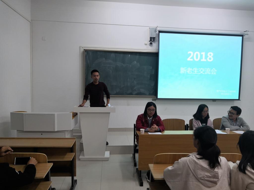 会上,老生代表首先做了自我介绍。随后,就学习生活、专业了解、课程学习、社会实践、社团活动等方面发表了自己的看法,语言温和幽默,场面一片轻松活跃。其中特别强调了专业课的重要性,对以后考研及就业创业发展都起着重要作用。接着学长现身说法,给大家提出了诸多建议:多参加些课外活动,丰富自己的眼界,提高自身的能力;多与人交往,扩广人脉,增强交际能力;多读书,提升自己的文化素养。最后,开展问答交流环节,新生们提出自己心中的困惑,老生代表耐心倾听,就新生提出的疑惑进行详细解答并给予建议。
