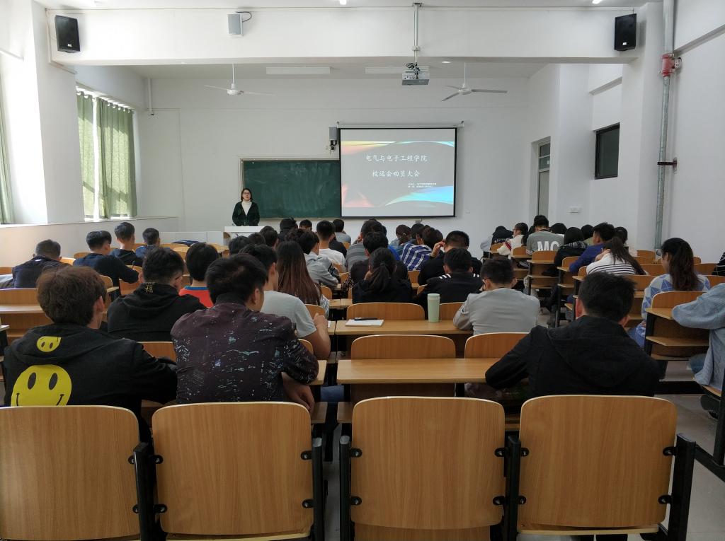 10月24日中午,电气与电子工程学院于致知楼C103召开校运会运动员与陪练人员动员大会。出席本次会议的有学院团委副书记邓茜、辅导员杨勇,学院学生联合会主席檀伟、副主席孙延军以及全体运动员与陪练人员参与此次会议。