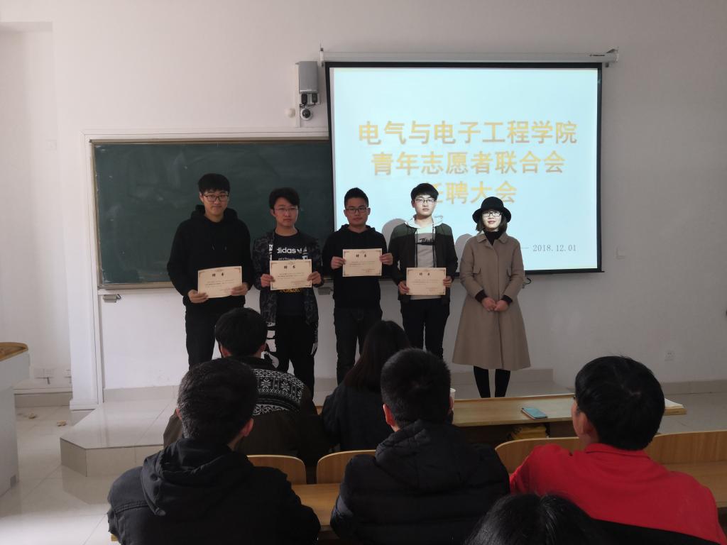 为促进学院青年志愿者联合会的发展,加强组织建设,积极开展志愿实践工作。12月1日下午,电气与电子工程学院青年志愿者联合会在致知楼C109召开任聘大会。电气与电子工程学院团委副书记邓茜、志愿实践中心主任胡丽南、青年志愿者联合会会长袁鼎发及全体成员参会。会议由袁鼎发主持。