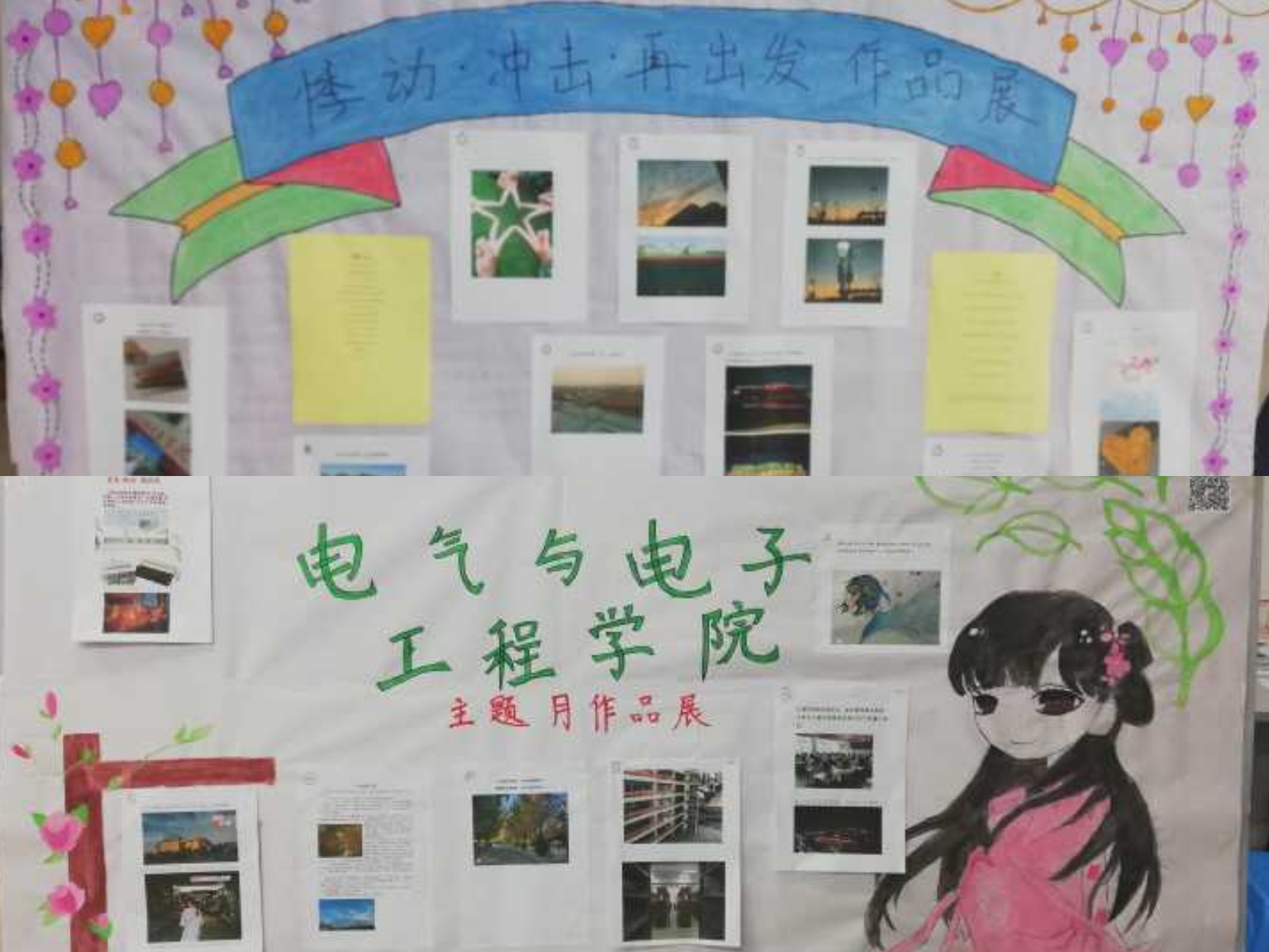 12月5日,电气与电子工程学院与管理学院于知味园前广场联合开展了十一月主题月“悸动 冲击 再出发!”线下作品展活动。活动由电气与电子工程学院学生联合会主办,电气与电子工程学院学术资源部与管理学院学习部联合承办,两院全体学生参与了此次活动。