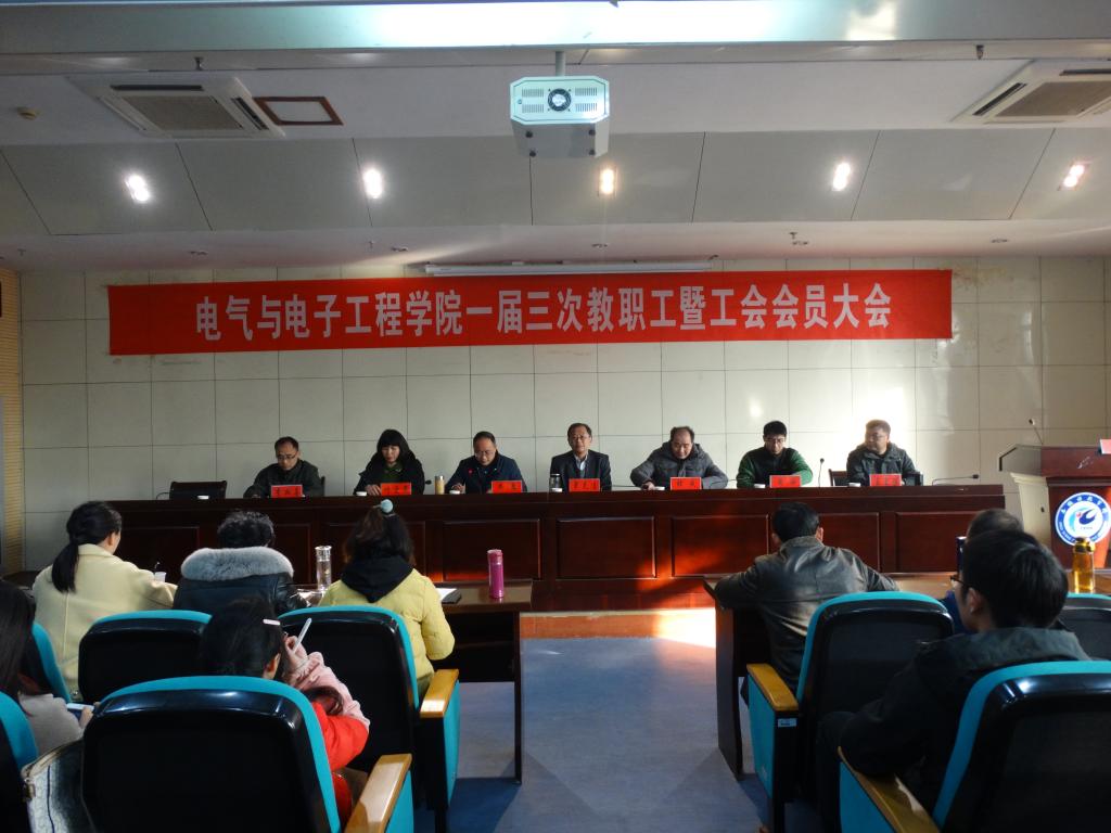 12月24日上午,电气与电子工程学院在凤阳校区新图书馆第一报告厅召开一届三次教职工暨工会会员大会。学院党政领导班子、全体教职工参加了会议。会议分为两个阶段,由党总支副书记尚磊主持。