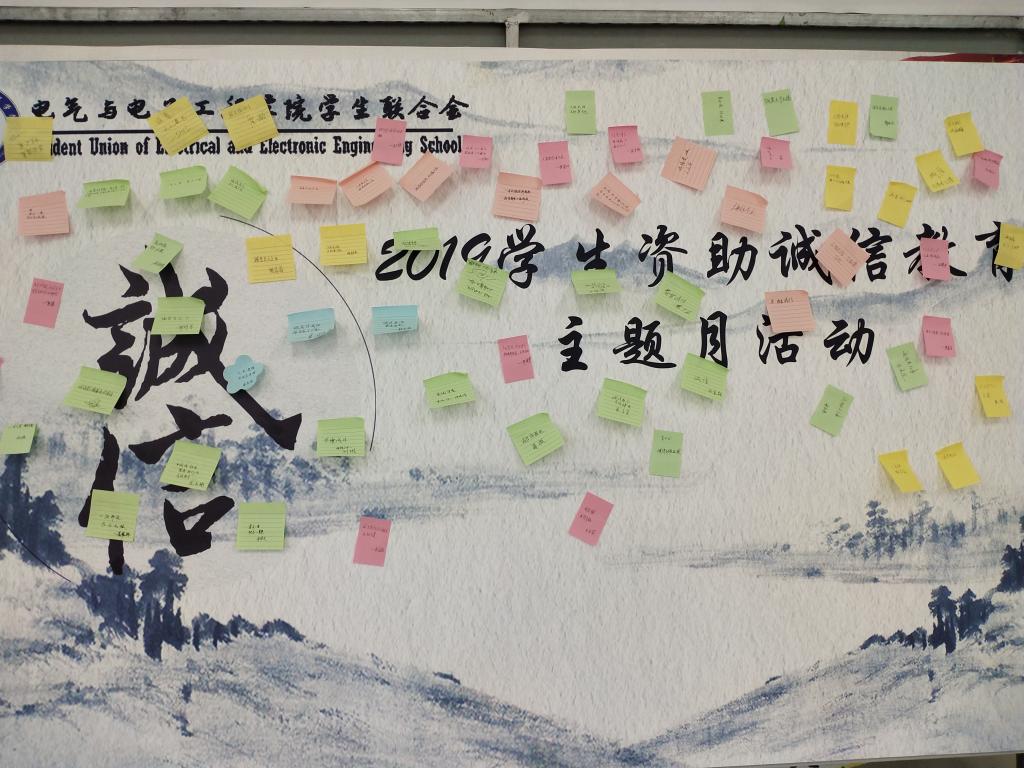 为了提高学院学生诚信意识,促进助学贷款健康发展,根据党委学工部《关于开展学生资助诚信教育主题月活动的通知》(学工字〔2019〕10号)文件精神,5月29日上午,电气与电子工程学院在龙湖校区广场开展学生诚信签名活动。活动由电气工程及其自动化专业18级资助委员丁志强和王孝发负责。