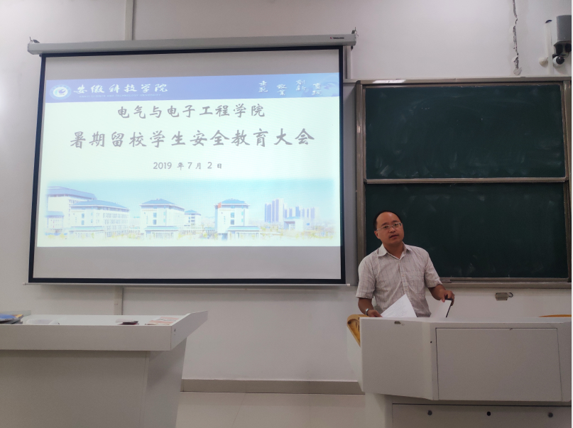 为提高暑期留校学生安全意识,加强对留校学生安全工作管理。7月2日下午,电气与电子工程学院在致知楼B111召开2019年暑假留校学生安全教育大会。学院党总支书副记尚磊,辅导员杨勇,及全体留校学生参加会议。