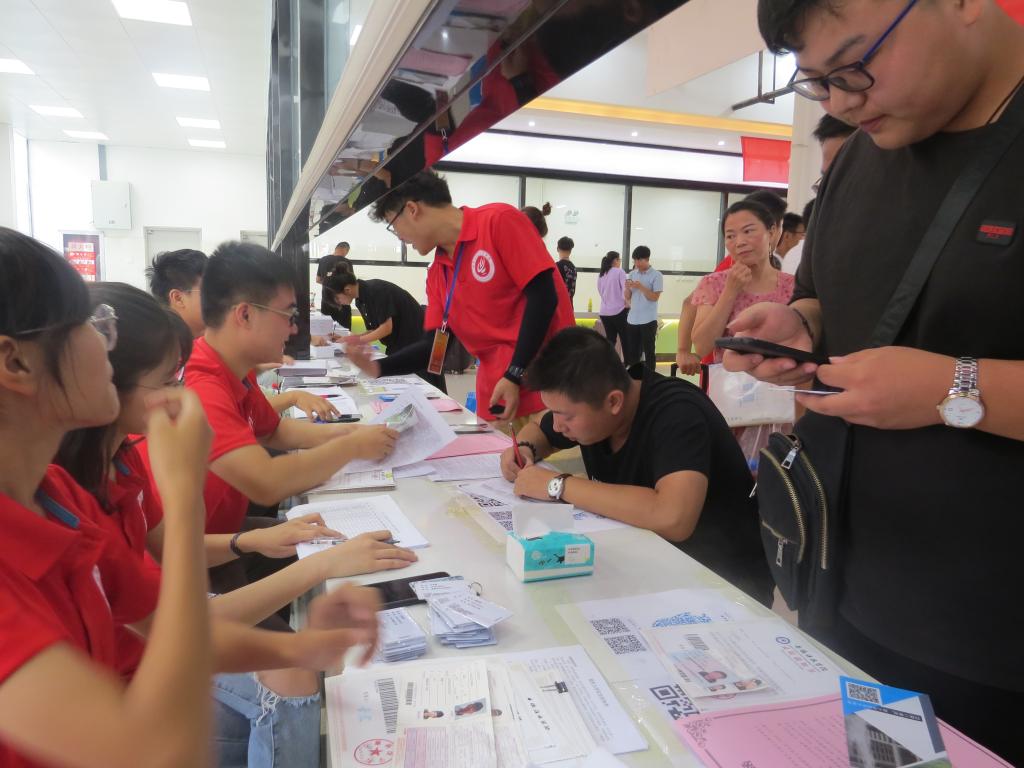 报道大厅中,学院迎新工作人员身着红色上衣,在每处工作站耐心地等待着陆陆续续到来的新生们,并引导他们完成报道手续。学生志愿者们温暖的笑脸、忙碌的身影、热情的引导,耐心解答新生和家长的问题,在校园内、报到大厅内,一抹又一抹鲜艳的红色随处可见。更有帮忙提着行李的志愿者带领着新生穿梭奔走在报到的每一处,全然不顾汗水已浸透了自己的衣背……