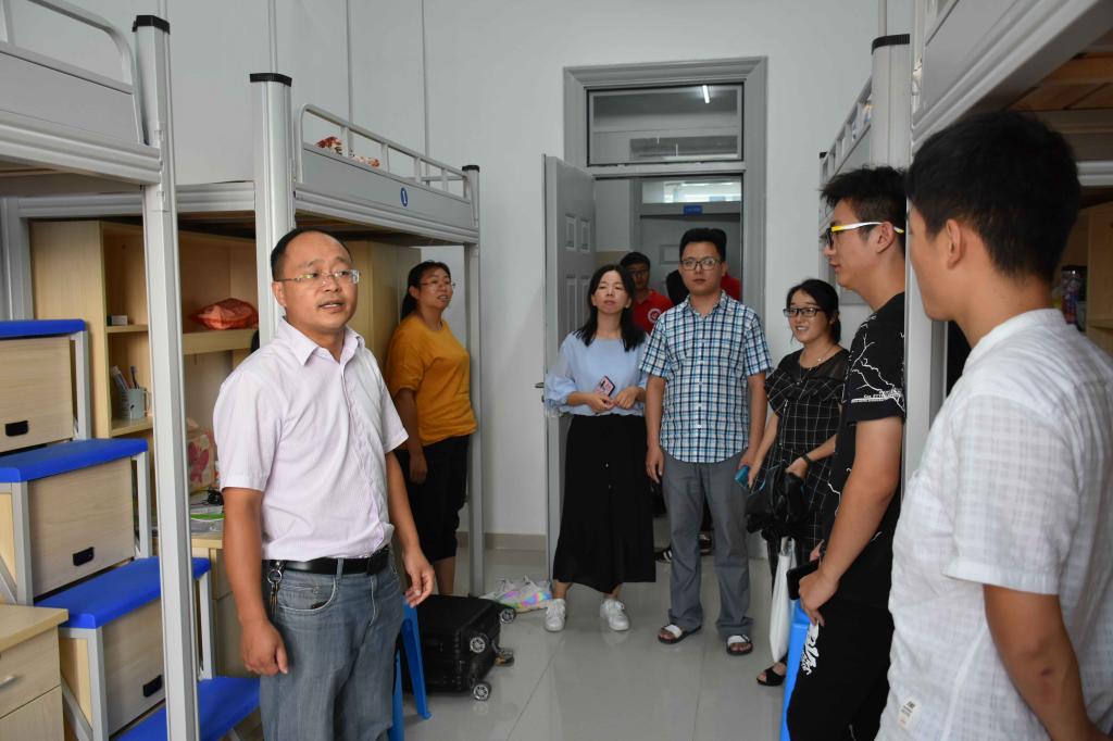 9月8日下午新生报到结束后,电气与电子工程学院党总支副书记尚磊、院党总支秘书团委副书记王延丽、辅导员杨勇、宋志华带领学院学生联合会及导生团部分成员走进龙湖校区学院新生所在宿舍,看望入学新生。