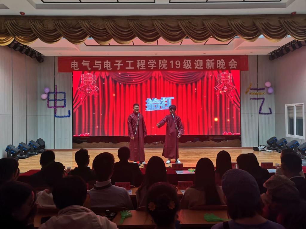 迎时代新风,展学子华彩。11月16日晚,电气与电子工程学院在敏行楼A报告厅举办“舞动青春、放飞梦想”2019级迎新晚会。学院党总支副书记尚磊、院长助理国海、党总支秘书王延丽、辅导员宋志华、陈更强、杨勇,兄弟学院学生代表及2019级全体新生观看了晚会。晚会由朱芳芳、孟祥、朱馨宇、王相增、秦吉丽主持。