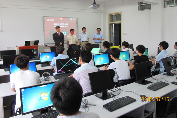 7月16日上午,国际交流与合作中心主任张严政在学知楼407国际班网络语音教室主持韩南大学教授来校授课开班典礼,通报中国教育部关于中外合作办学项目外方授课的相关规定,以及韩南大学教授首次来校授课的总体安排。械工程学院院长陈杰平教授、国际交流与合作中心副主任王松华教授、机械工程学院党总支副书记兼中韩班班主任路云参加开班典礼;陈杰平要求中韩班同学倍加珍惜这次难得的专业课和韩语学习机会,认真听课、积极思考,确保本次外教授课工作取得预期效果。