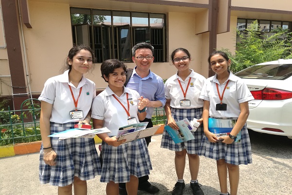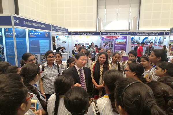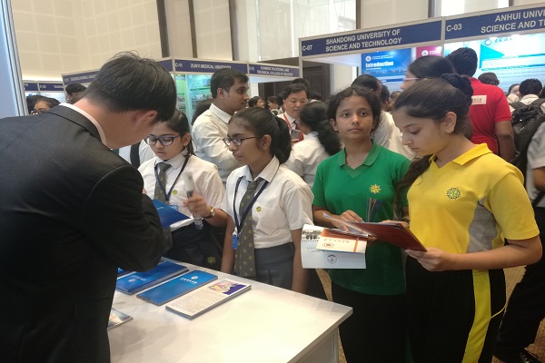 在接下来紧张的两天会展期间,在中国驻加尔各答总领事馆的精心组织和总领事马占武的现场指导下,我校两位工作人员与所有中国参展高校代表一起,热情接待一波又一波的印度高中和大学的来访师生(总计超过5000人),宣传中国高等教育发展最新成就和各自学校的地理交通、办学特色、学科专业和外国学生招收专业设置与师资队伍、奖学金政策及相关费用收取标准,认真倾听并仔细回答参展学生的各种咨询问题,现场教学汉语和书写汉字,介绍中国悠久的文明历史、丰富的文化资源和“新四大发明”(高铁、网购、移动支付、共享单车),引起印度学生浓厚的兴趣和强烈的好奇心,纷纷表达了前往中国留学的意愿,不少学生还当场填写留学申请表格、留下联系信息。