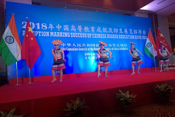 在印度参展期间,我校两位工作人员还应邀参加了中国驻加尔各答总领事馆举办的“2018年中国高等教育成就及招生展招待会”,与印度地方政府官员、社会各界人士和参展大中专院校校长座谈交流,观看云南省文化馆艺术家们的精彩演出。与会中印代表一致认为,作为世界最大的两个发展中国家,需要加强相互了解、增进互信,进一步开展友好交流与互利合作。
