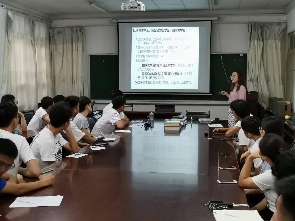 9月1日下午,机械工程学院在学院会议室召开2019-2020学年秋季学期资助委员培训会,同时也是“资助政策两节课”会议,对学院资助委员进行培训和工作方法的指导,并布置本学期工作。会议由辅导员谭博文主持。
