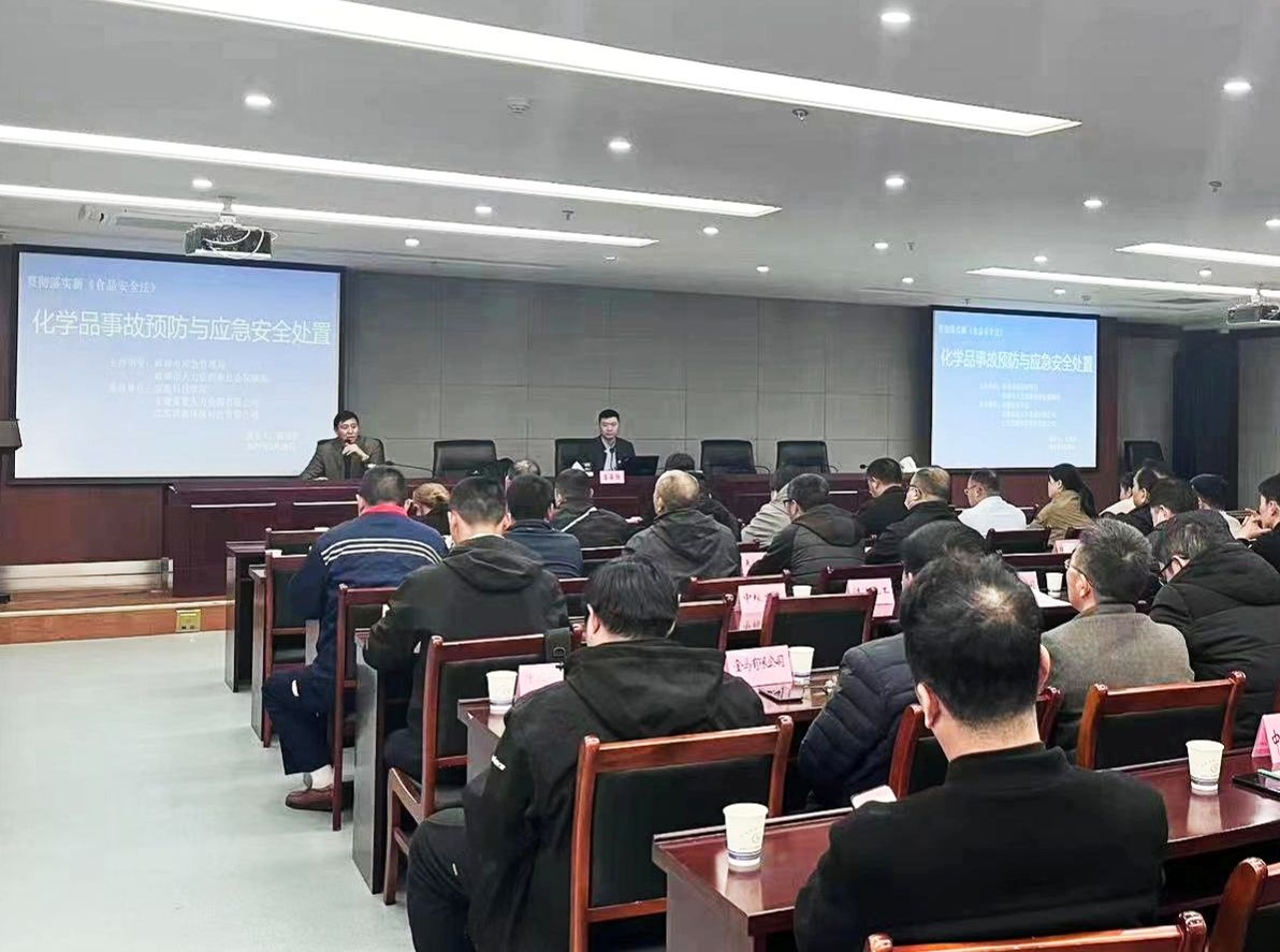 3月28日下午,由蚌埠市应急管理局、蚌埠市人力资源和社会保障局主办,安徽科技学院、安徽禹宸人力资源有限公司、江苏君源环保科技有限公司承办的安全生产培训会在蚌埠市人社局会议室举行。会议邀请了安徽科技学院化学与材料工程学院校友、江苏君源环保科技有限公司总经理屈俊勋作了《贯彻落实新《中华人民共和国安全生产法》暨化学品事故预防与应急安全处置》主题培训。来自蚌埠市的近50家大中型化工、材料类企业安全负责人、安全员参加了培训。会议由蚌埠市人社局人力资源流动管理科科长侯长进主持。