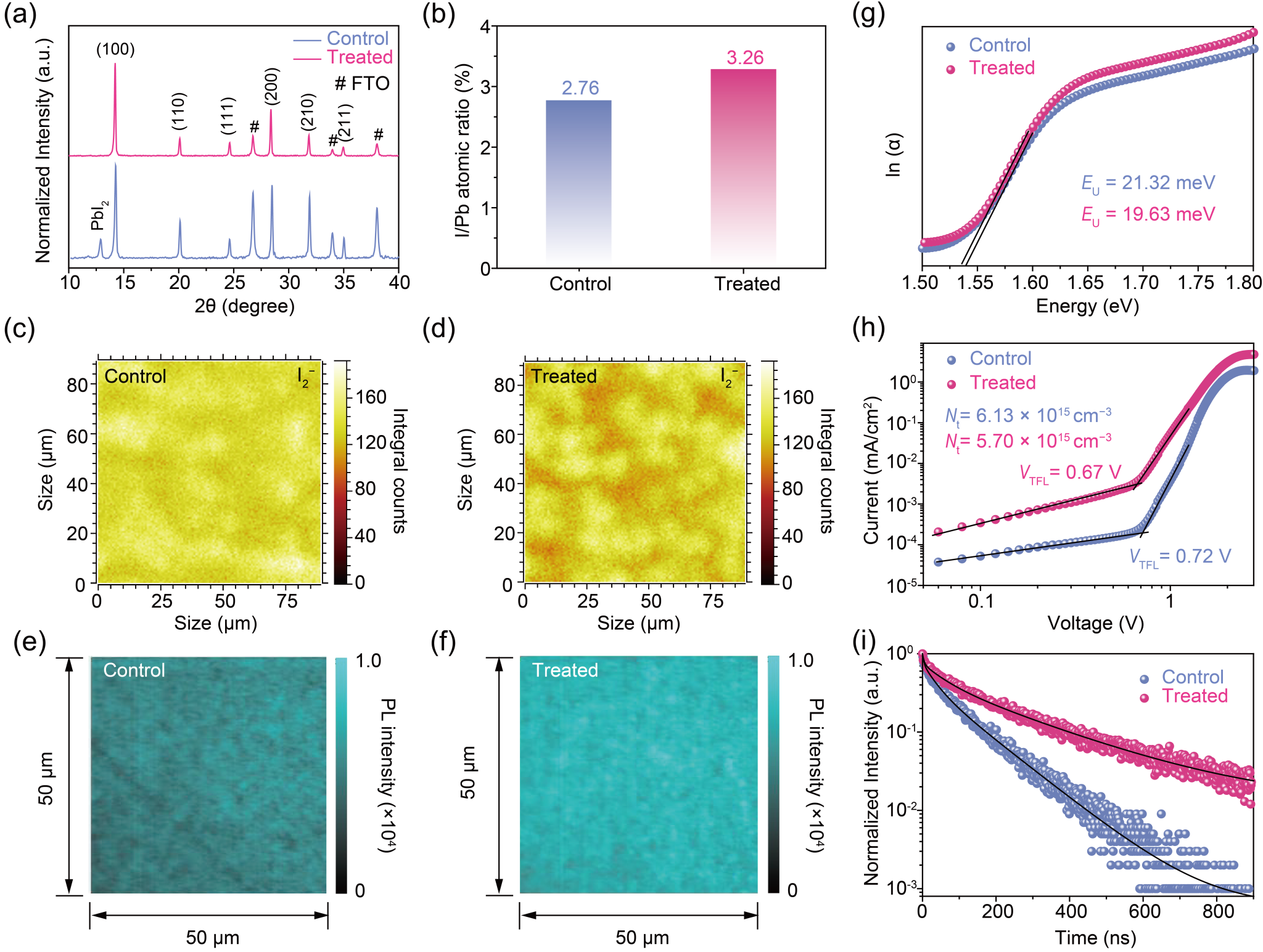 近年来,钙钛矿太阳能电池的光电转换效率从最初的3.8%迅速提升至26.1%。研究表明,适度过量添加碘化铅可以显著提高光伏性能,但同时也加速了钙钛矿材料的光降解,导致电荷复合中心增加,离子迁移加速,开路电压和光电转换效率降低,严重损害了钙钛矿太阳能电池的长期运行稳定性。针对这一问题,本研究开发了一种新的分子钝化策略,展示了一种利用TBP分子增强钙钛矿结晶的方法,有效提高了钙钛矿太阳能电池的光伏性能和稳定性,从而实现了超过24%的光电转换效率,此外还使光伏器件在强湿度和持续光照条件下表现出优异的稳定性。